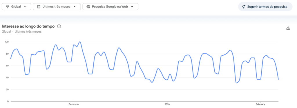 Ao observar os últimos três meses com mais atenção, percebe-se que nem mesmo o anúncio do ITIL versão 5 foi capaz de alterar significativamente a tendência de busca pelo tema. O termo saiu do mainstream (onde todos falavam sobre isso) e se tornou um assunto de nicho.